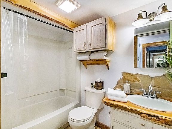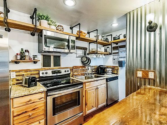**Buyer's agent will receive 3% commission with full price and up offer** Amazing furnished condo with wood burning fire place close to (2 blocks or 6 minute walk) to the bike park and ski lifts! Designed for vacation rentals and already have some bookings for over $500/night during ski season. I am selling in order to 1031 exchange into STR multifamilies. Check out my other listing - I haven't decided if I'm selling only one or BOTH. Live edge open concept shelving in the kitchen, brand new furniture, stainless steel appliances, and steel-slatted beds with custom carved wooden headboards. There are two amazing monthly guests in for month of June/July as they are also buying a home in Angel Fire. Buyer will have to honor the stay. {Below is from vacation rental listing- you can keep furniture and custom designer art as part of purchase} BEDROOM 1: The master bedroom is equipped with a queen-sized bed as well as a twin-sized daybed. A chest of drawers and a full closet filled with hangers provides a place for all of your clothing and belongings. A smart TV is equipped with basic cable. 2 USB-outlet lamps and nightstands give you plenty of space for you to access your favorite books and electronics. Bathroom 1 is located inside the master bedroom. BATHROOM 1: This bathroom is located inside the master bedroom and features a sliding barn door, ornate silver mirrored cabinet, and live edge countertop and shelving. Walk-in tiled shower allows for easy access. The shower has a shampoo/conditioner/body wash dispenser. 1 towel per person staying will be provided, and thus the correct number of people should be reflected in your reservation. BEDROOM 2: The secondary bedroom is equipped with a queen-sized platform bed. A floor twin-sized mattress is included to sleep an additional person. A carved wooden chest provides additional seating options as well as extra blankets for the guests. The closet has plenty of hangers for storing your clothes. A reading chair, nightstand, and USB-outlet lamp completes the room. BATHROOM 2: This bathroom is accessible via the common areas and features live edge cabinet and shelving. Tiled shower as a shampoo/conditioner/body wash dispenser. 1 towel per person staying will be provided, and thus the correct number of people should be reflected in your reservation. DINING/LIVING AREA: The living room has a velvet Chesterfield sofa with a pull-out queen-sized mattress. The console table by the entry door converts into a full dining table that can be used with the sofa and chairs to seat 4-5 people. A leather chair, side tables, lamps, and coffee tables round out the room. Instructions for converting the console table into the dining table is provided in the check-in instructions. Three barstools and a live edge bar top counter provides for additional dining/seating options. KITCHEN: The kitchen with live edge countertops and open-shelving has all the basic necessities to make a meal, down to the oil, pepper, and salt. There are two lidded pans and 1 lidded pot, strainer/bowl set, a regular blender, a ninja bullet blender, a regular coffee maker, a keurig coffee maker, stainless steel appliances (fridge/freezer, cooktop/oven, microwave), and dishware and silverware (plates/cups/bowls/forks/knives/spoons).