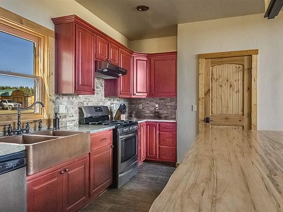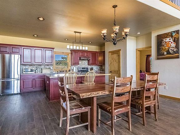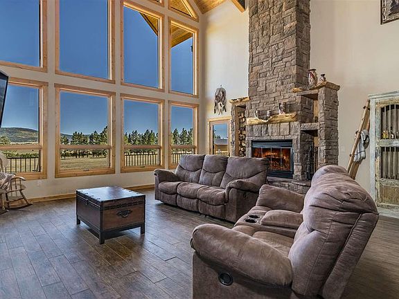 How about seclusion and 23 acres and only 10 minutes to Angel Fire?! Drive up to this stunning 23 acre setting and wind around past the 30' X 40' workshop/barn (concrete floor, 30 and 50 amp power) and up to the 2017 custom built house. Park on the concrete pad and enter through the custom made oak door to an entry way of travertine tile with marble inlay design and you'll feel the comfort of the in floor radiant heat. You'll continue on to the open design of living/kitchen/dining area and be immediately captured by the wall of windows overlooking the property and views to the south of valley and mountains. You'll notice the massive stone fireplace (with blower) and the custom designed aspen mantle. As you look up to the 30' ceilings you'll notice the loft with big views and comfortable seating area. The kitchen features Kenmore Elite appliances, copper farm sink and an Indian Rose wood dining table, with wormy maple and granite counter tops surrounded by custom made cabinets. All three bedrooms are on the main level, and the master suite french doors open to the covered deck and views. The bathroom has a large claw foot tub, walk in shower and walk in closet. Mosey on out to one of the 4 outbuildings and view the 23 fenced acres with gates on each side. The over sized 2 car garage has in floor radiant heat to help make that morning commute a little more comfortable. You'll even have room in there for a work bench, if you're so inclined. A remarkable home in a stunning setting with lots of possibilities. This property also includes a lot in Angel Fire so you can enjoy the resort amenities. In the winter months you'll love riding your snow mobiles around the property and in the summer, just hop on your 4 wheelers and have a blast. A perfect year 'round property!