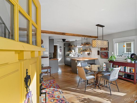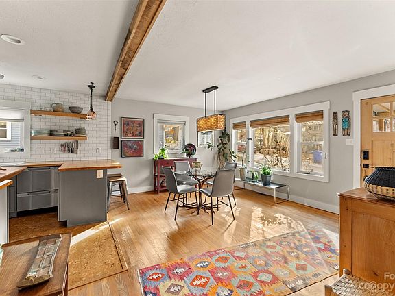 Charming 2bd/1ba w Asheville bungalow with stunning landscaping. Recently updated with a beautiful kitchen and baths, an addition in the back of the house provides a cozy living room with heated cork flooring, opening to a back patio and firepit area. This home is in the heart of W Avl, offering convenience and a vibrant community atmosphere on a dead end street. The beautiful gardens and screened front porch add to the property's appeal, providing a tranquil retreat in a sought after location. Enjoy modern amenities and the eclectic charm of W Avl in this inviting home. Cute custom storage shed provides extra space or workshop area.