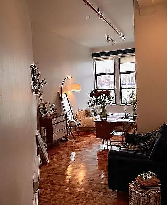 Spacious loft located on Dumbo's waterfront. This authentic factory converted loft has an alcove kitchen featuring stainless steel appliances, including a dishwasher. Highlights include high ceilings, a large lofted storage area, hardwood floors, and original details, such as huge wood beams and wood ceilings. There are large windows offering great light and river and bridge views. Washer / Dryer in unit! Located just 2 blocks to the York st. F train and a quick walk to Dumbo's waterfront park and East River Ferry this is a location to be coveted. There is a freight elevator available for use by appointment with the buildings super.