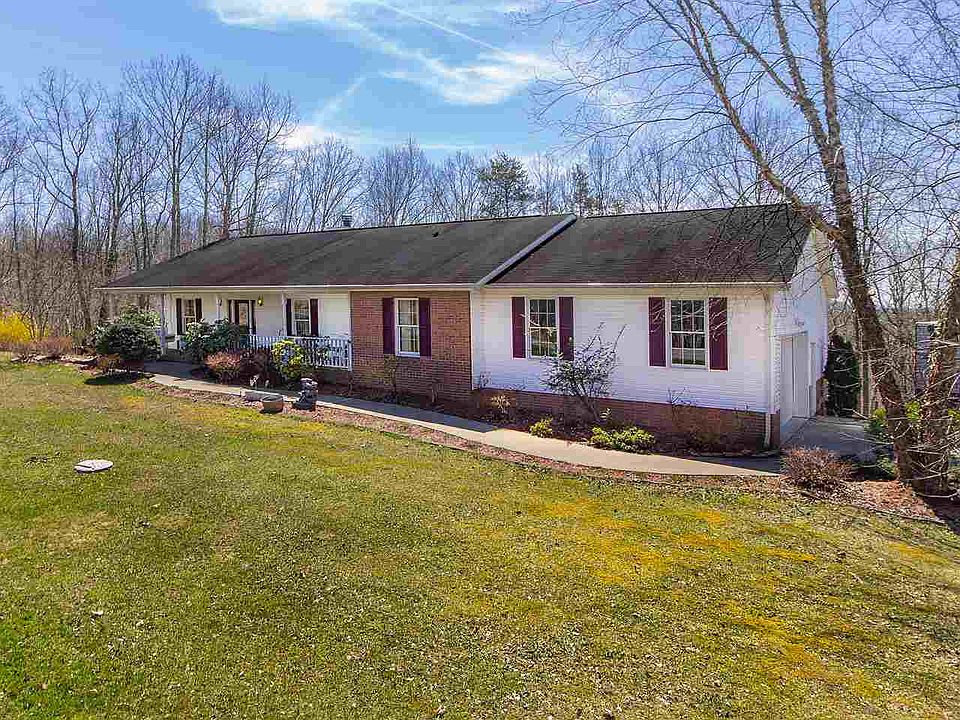 Charming updated home, very private setting, on over 3 acres of land. Three bedrooms, two baths, living room, dining room, den/office, equipped kitchen, owner's bedroom with walk-in closet, and double doors leading to large rear deck overlooking the property. Two car garage attached to the home. If you like privacy and convenience, this house is for you.