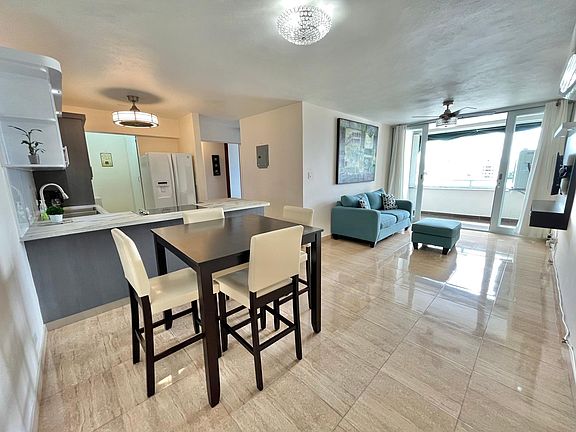 Renovated 3 bedrooms and 2 bathrooms apartment in Miramar! You'll find everything you need in this apartment complex. Ground level includes restaurants, coffee shops, clinic, pharmacy, banks, supermarket, and more! Walking distance to the beach, movie theater, parks, playgrounds, and T-Mobile District. No need for extra car trips! Old San Juan is only a short 5 minute drive. The airport is 15 minutes away. The unit comes with an updated and equipped kitchen. The master bedroom has a walk-in closet and ensuite bathroom. From the entire ample floorplan you will enjoy views of the San Juan Bay. Apartment comes with AC's in each bedroom and living room, refrigerator, washer/dryer, and inline electric water heater. Unfurnished. 1 covered private parking. The complex has a pool, laundry facilities, water cistern, 24/7 security, and generator for common areas. Monthly rent: $2,500. Owner pays HOA fees. Renter is responsible for water, electricity, and cable/internet. No smoking allowed. Pet-friendly: cats allowed; small dogs allowed. $200 one-time non-refundable pet fee per pet; $25/month pet rent per pet. Maximum of 2 pets!