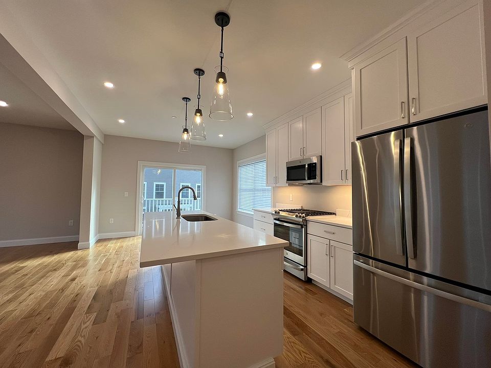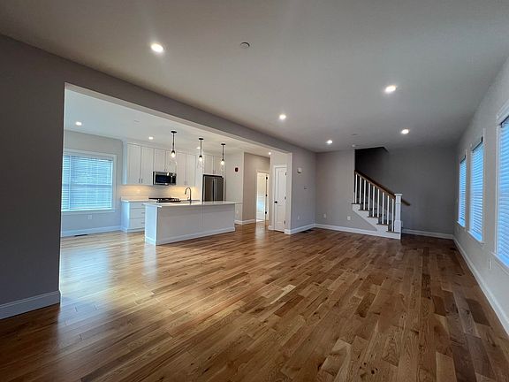 New Construction! Welcome to Juniper Commons, a new 50-unit townhome pocket community in a great Portsmouth location. Subdivision Abutting vast wooded conservation land, this beautifully landscaped community will feature three bedroom, three bath townhomes. This is an end unit of the Ashford Plan! The two-car garage leads into a finished first floor space ideal for an office, or mud/storage area. Up the hardwood stairs the living level is an inviting open layout with high ceilings, hardwood flooring, and great natural lighting. The spacious living and dining area opens to a beautifully finished kitchen including cabinetry to the ceiling, pantry storage, oversized island, stainless appliances, and high end stone countertops. Sliding glass doors off the kitchen leads to a private deck space. The third floor has three bedrooms and two baths, including a primary suite with walk-in closet, and bath with tile shower and glass enclosure. Hardwood flooring throughout all bedrooms and living areas. Central air. Professionally landscaped community with community park, sidewalks, and trail leading to the lush wooded open space behind the homes for all to enjoy! Pictures of a similar unit.