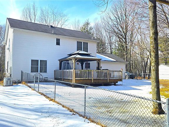 This 3 bedroom, 2.5 bath colonial is located in Little Gap Estates and is within minutes of all the Poconos have to offer. Blue Mountain Ski Resort is 10 minutes down the road. Pennsylvania Turnpike entrance is just 15 minutes away making travel to the Lehigh Valley and Philly areas very convenient. The home sits on over an acre of land on a corner lot. There is a 2 car side entry garage along with an additional parking pad which doubles as a basketball court. The large living room measures 29x13 and is open to the kitchen. Off the kitchen is a spacious deck (20x16), which over looks the fenced portion of the yard. The lot is wooded and private. The home has hardwood flooring in the kitchen and dining room. More then half the basement is finished and is heated by a propane stove. The rest of the home is heated by an oil, hot air system and was new in 2019. There is a water softener and treatment system. The 200 Amp electrical system is backed up by a propane generators. The master suite is a very good size with a large walk-in closet and double vanities in the bath. There's an additional 2 bedrooms and full bath on the 2nd floor.