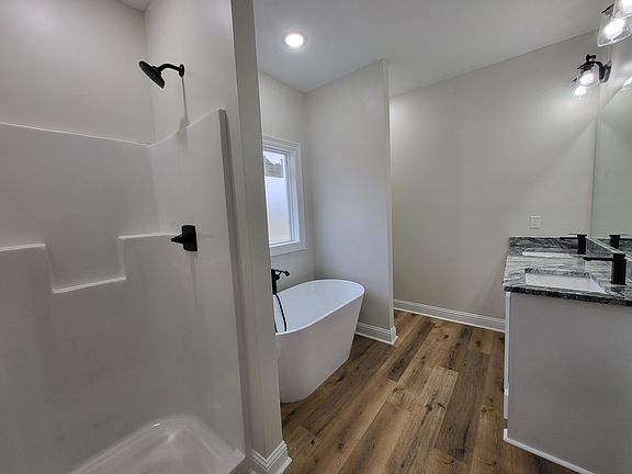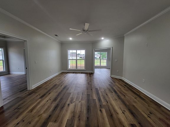 Welcome to 25 Karpen Dr in Petal, MS - a brand new construction home located in the desirable Meadows of Pecan Lakes neighborhood. This 3 bedroom, 2 bathroom home features a split floor plan, with the master bedroom on one side and the spare bedrooms on the other for added privacy. The home boasts an architectural shingled roof, and 9 ft ceilings throughout, giving a spacious and open feel. The kitchen is perfect for cooking and entertaining, with a nice work island, plenty of cabinets and countertop space, and a convenient pantry. The home also features granite countertops throughout, and luxury vinyl plank flooring. The living room is spacious and perfect for relaxing or entertaining. The master suite includes a separate walk-in closet with built-ins, double vanities, and a free standing soaking tub.