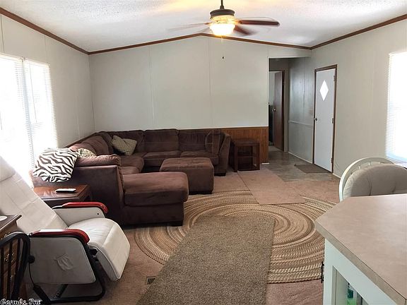 Clean, well laid out mobile with master suite on one side, open living room and kitchen in the center, and guest bedroom and full bath on the other side. Outside storage building with carport for your boat. Circle drive. All appliances will stay and furnishings negotiable too. Very close to lake access at Devil's Fork Park. Located within the city limits of Greers Ferry.