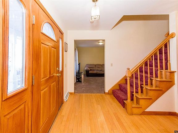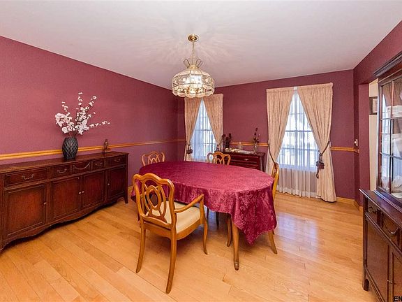 Welcome to this spacious & light filled 4 bedroom, 2-1/2 bath home. Eat in kitchen with huge island, HW floors & Loads of cabinets, granite, double wall ovens and open to the family room with gas fireplace. Great space for entertaining with family and friends. First floor mudroom with laundry, finished space in the basement, full front porch and 2 car garage. Central AC, public water and sewer. Close to everything: shopping, restaurants,recreation. Taxes do not include the STAR exemption.