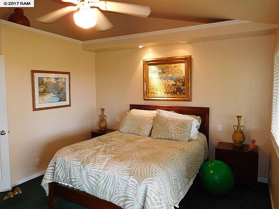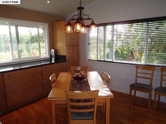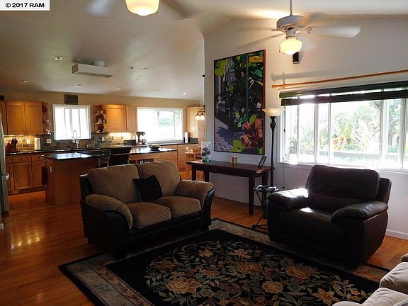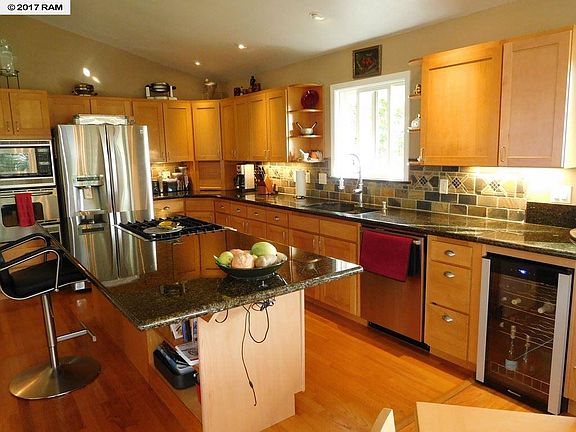 This private setting is an ideal location in Haiku! A short stroll to Haiku town center yet secluded at the end of a cul-du-sac with lush tropical landscaping. This upgraded 4 bed/3 bath home has owned 42 panel photovoltaic system on net metering! Two master suites - one up, one down - make this a versatile layout. Recent upgrades include a dining area with self-closing cupboards, granite top buffet, wine cooler and access to the covered wrap around lanai - great for entertaining! Lanai overlooks the beautiful, large koi pond and waterfall for ambiance and tranquility. There is an upper yard area that has been used for a traditional imu pit. Kitchen has stainless appliances, TWO stoves and built in microwave for the true gourmet! Granite counters and on the flat top island, with seating, contains propane stove and upgraded exhaust system. Decorative tile backsplash and plenty of cupboard space. Sliding doors from dining area and upper master to the lanai. Recessed lighting, dimmers, many ceiling fans, wired for speakers in the living area and two masters. Outdoor shower off the lower master along with an office area and small space to put a kitchenette to create a "mother in law" studio with own lanai space. Recently painted, other features include security system, central vacuum, back up generator, wired for a hot tub, a two room "no-hana" with own bathroom, entry and small fenced yard area which could be used as a nanny's quarters or rental. Beautifully landscaped yard and along the rock wall lined drive with a round-about and plenty of parking. A great home, a great buy and yet convenient to town and the highway. Requires 48 hour notice and pre-approved Buyers. Wanting the cooler Haiku weather and feeling of privacy? Then be sure to see this property. Call for an appointment today!