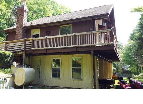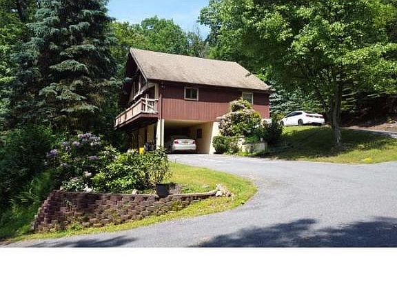 Welcome to nature! This spacious A Frame is located on 3 wooded acres in the Oley School District. The cathedral ceilings brings in tons of natural light and allows for a secluded master suite located in the loft. A second bedroom is on the main level and also has a private bath. Finish the lower level for additional bedrooms or a family room! It has a private entry from the covered carport. The eat-in kitchen has plenty of cabinets and all appliances remain! Charm abounds throughout this home, from the detailed moldings, to the rustic re-purposed posts and beams. There is no lack of character here!A wrap-around porch adorns the front of the home, and the private woods are in the rear, along with a shed. Bring your creative touches to make this one of a kind home your own!