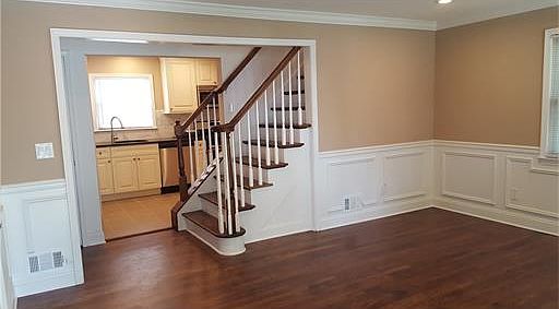 Updated and Remodeled Cape; 2 Full Tiled Baths; 3 Bedrooms / Master Bedroom Suite; 36" All Wood Cream Cabinets; Crown Molding; Pantry; All Stainless Appliances; Granite Counters; Tile Back-Splash; All Oak Hardwood Floors; Full Finished Basement with Utility Room; Central Heating and Cooling; Large Yard; Great Starter Home