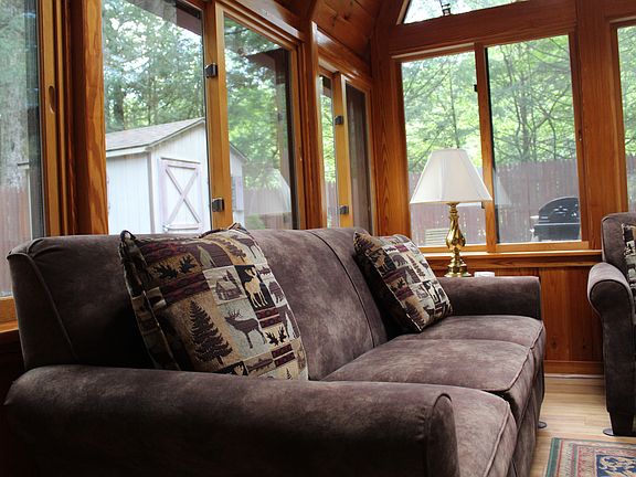 L Charming Home across FROM THE LAKE. Fabulous legal short term Rental Investment, (grandfathered) fully furnished and equiped turnkey. Vacation, short or long term rental or Primary home. Great Room has a Wall of Glass. Country Kitchen has propane fireplace.2nd Fireplace in the dining area adds ambiance. Enjoy the views or walk onto the decks and really take in the mountains & seasonal lake view. HARDWOOD flooring throughout the home. Spacious bedrooms open onto raised deck. Features HOT TUB room, soak away the aches & pains after a day at the ski slopes. A place to escape the hustle bustle of daily living. Professionally landscaped, extra storage sheds (3). Move in Ready Comes Fully Furnished! Pool table, hot tub and boats included. Call Mike 570-956-4169 for your private showing and appointment today.