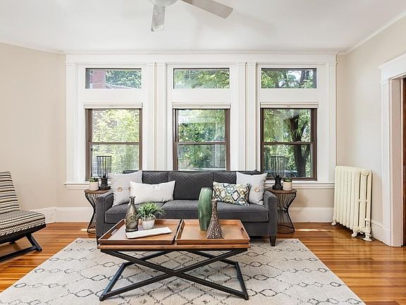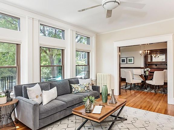 Beautiful Brownstone on tree-lined street near Jamaica Pond. Southwest facing first floor condo features hardwood floors throughout, generous ceiling height and charming period details. The spacious formal entryway leads to a sun-filled living room with sconce lighting and upgraded window treatments. Off of the living room leads to the formal dining room with original woodwork and highlighted by a stunning fireplace and mantle. A pass through pantry with built-in glass cabinets and drawers connects to the kitchen that includes a breakfast bar, two storage pantries and access to the washer and dryer. The spacious master bedroom faces the interior courtyard and an additional bonus room can be used as a guest room/office/den. The bathroom has been tastefully updated with built-in cabinets and radiant floor heating. Additional basement storage. Wonderfully maintained common area courtyard. Pondside off of Centre St and near JP's many amenities, shops, restaurants and transportation.