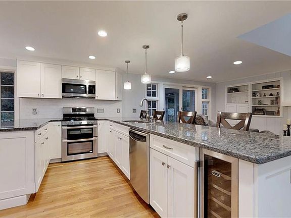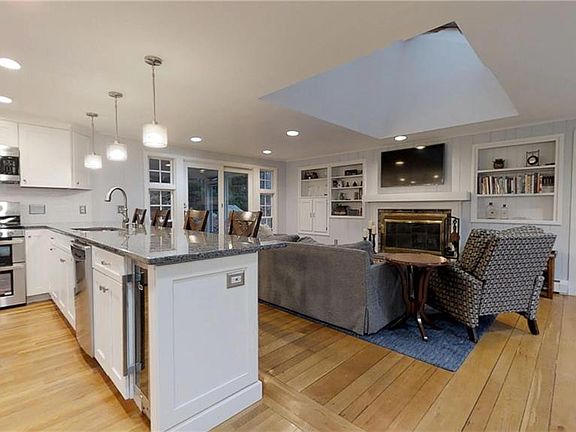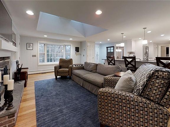 A Home for Your Holidays! Primely located in the highly sought-after Tanglewood neighborhood of East Greenwich sits this stately Moorehead colonial. Beautifully updated kitchen that opens up to bright, sunny family room with bay windows, skylights and wood-burning fireplace. Front-to-back living room and dining room are perfect for entertaining at the holidays. Upstairs offers 4 bedrooms and 2 full, updated bathrooms. Finished basement ideal as home office, playroom, media room. Expansive fieldstone screened in porch opens to private fenced backyard with deck and hot tub. Central Air and hardwoods throughout. Town water, sewer, gas heating. Centrally located with easy access to highways, EG's Main Street, local schools. Make it your home for the New Year!