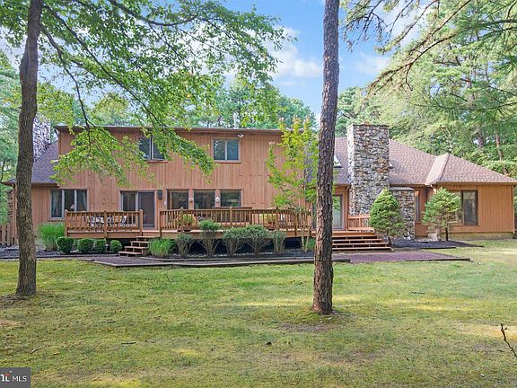 One-of-a kind custom stone/cedar contemporary on one of Medford's most desired private streets with no thru traffic. This gorgeous home features an amazing open floor plan, first floor primary bedroom suite and backs to endless acres of protected forest. Built with the finest materials, the 30+ year Timberline roof (2016) is still under warranty. There are Anderson windows and doors throughout, two gas fireplaces, exposed beams and recessed lighting in virtually every room on both floors. You'll be greeted by a stunning stone wall in the foyer and face the soaring ceilings, skylights and stone fireplace in the Living Rm. The custom wet bar, complete with fridge, icemaker, wine rack and locked liquor storage is tucked behind the stairs and is a favorite hangout spot when entertaining. The Dining Rm shares the stone wall with the foyer and is open to the rest of the main floor. The Kitchen offers granite countertops and backsplash, Subzero Fridge w/new compressor (2021), Jenn-Air downdraft cooktop w/grill insert in the island and stainless steel appliances. The Breakfast Rm is adjacent to the breathtaking 400-gallon pond with two waterfalls (rebuilt in 2020), which was once featured in Design NJ magazine! The pond is low-maintenance and has water access within the pond area for ease of plant care. Watch the snow outside in the winter while enjoying the waterfalls and fish all year... "truly "zen". The Family Rm also shares views of the pond, has a gas fireplace and exits to the huge two-level deck. The main floor Primary Suite is separated from the Bath by a glass pocket door. The Bath offers tumbled marble floors, a skylight, double sinks, dressing area and walk-in closet. Upstairs, there are hardwood floors throughout except for Bedrooms 2 & 3 which are carpeted. The first Bonus Rm at the top of the stairs, currently used as an art studio, has access to the huge, floored walk-in attic. At the end of the hall is Bedroom 4 w/built-in shelving, access to the remodeled Jack & Jill Bath w/double sinks, granite countertop, tub/shower combo and access to Bonus Rm 2 w/skylights and can be used for whatever you desire... game room, gym, office? Bedroom 3 shares the Jack & Jill Bath, and Bedroom 2 has it's own private bath. All bedrooms have ample closet storage and there is an additional large storage closet in the hall. The 3-car side entry garage enters into the main floor Laundry. Outside, the 44-ft deck offers endless views of the forest. This home also features 2-zone HVAC, security system, low-voltage landscape lighting and 7-zone sprinkler system. There is an immaculate concrete crawl space, accessible from Bilco doors, that runs under the entire home and provides tons of storage. It also houses the main floor heater (11/2016) and tankless hot water system. Rarely does a home come along with this quality of craftsmanship, a wide open floor plan for entertaining and a first floor primary suite in such a stunning setting where the deer will greet you daily. An excellent school system and close to all major highways. Owner is licensed Real Estate Agent.