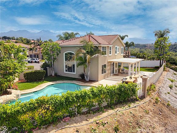 SPECTACULAR Reflections home on a prime lot, ideally perched atop the hillside at the end of a quiet cul-de-sac, boasting a private resort-like backyard blessed with fragrant canyon breezes and a sparkling oversized pool & spa, in what is arguably the best location in the community backing up to O’Neil Regional Park, overlooking a lush landscape with panoramic rolling hills and canyon views! The stately, highly manicured exterior welcomes you to the home. Pass through the grand double door entry and soak in the soaring two story ceilings and an open floorplan showcasing a gracious curved staircase with windows overlooking the picturesque pool area from the light filled formal living and dining room. Travel through to the expansive kitchen with granite countertops, timeless white shaker cabinetry, updated hardware and pulls, stainless steel appliances, a large center prep island, breakfast bar, and French doors opening to the back patio, perfect for alfresco dining. The kitchen is open to the Family Room and a bonus office/study space with gorgeous open beam ceilings, built-in cabinetry, media center, and an inviting gas fireplace creating an ideal space for gathering with friends and family. The spacious master suite is a peaceful haven with a cozy retreat, a romantic gas fireplace, gorgeous rolling hills views, and a spa-like master bath with dual vanities, soaking tub, step-in shower, and a huge walk-in closet with custom closet organizers. Upstairs includes 3 additional bedrooms, a full guest bath with dual vanities, and a bedroom level laundry room with full-size washer & dryer and linen cupboards. Fine features include wood floors throughout main level, plantation shutters, new blinds, new carpet, new exterior paint, new recessed lighting, and a dual zone HVAC system. The spacious backyard is a private oasis taking full advantage of the breathtaking panoramic views, and includes a covered patio, built in Bar, firepit, large grassy lawn, fragrant Meyer Lemon & Orange trees, producing grapevine, and a gorgeous inviting pool & spa with 3 waterfalls, Baja shelf, and underwater bench. The freshly painted 3 car garage has overhead storage, built in storage cabinets, work bench, and new epoxy flooring. Located close to numerous hiking & biking trails, Solano Park, community pool, playground, sport courts, and playing fields. SAMLARC amenities include RSM Lake, Lago Beach Club, local parks, and community events. Excellent Blue Ribbon Schools!