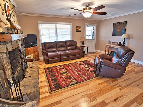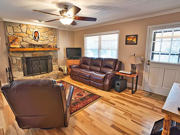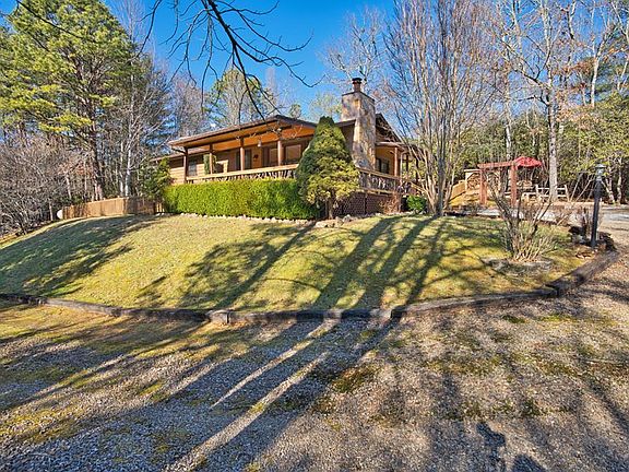 OFFERS IN BY 7pm JUNE 7th!! All the work has been done for you on this move-in ready, updated 2/2 cabin! Ideal part-time getaway, vacation rental investment or full-time living! The welcoming living space draws you right in with it's warm hardwood flooring throughout and gorgeous stone, wood burning fireplace to cozy up to! The spacious kitchen and dining area is sure to please with beautiful granite countertops and new stainless steel appliances. Sliding glass doors lead out to the wrap-around porch perfect for relaxing or entertaining. The primary bedroom has new carpet and an en-suite bath with custom made vanity, granite top and walk-in tile shower. Guest bath has also been updated with a new granite vanity and walk-in tile shower with dual heads! There's plenty to love outside as well! New mtn laurel railings, covered porch w/T&G ceiling, new stone chimney, fenced yard, wood shed, arbor, picnic area, 2nd shed w/decking and established landscaping. There's even a hot tub deck! Additional updates since 2018 include new drywall, new w/h, new plumbing, electrical & standby generator. Central H&A, easy access and 15 minutes to town, this delightful home can be your private oasis!