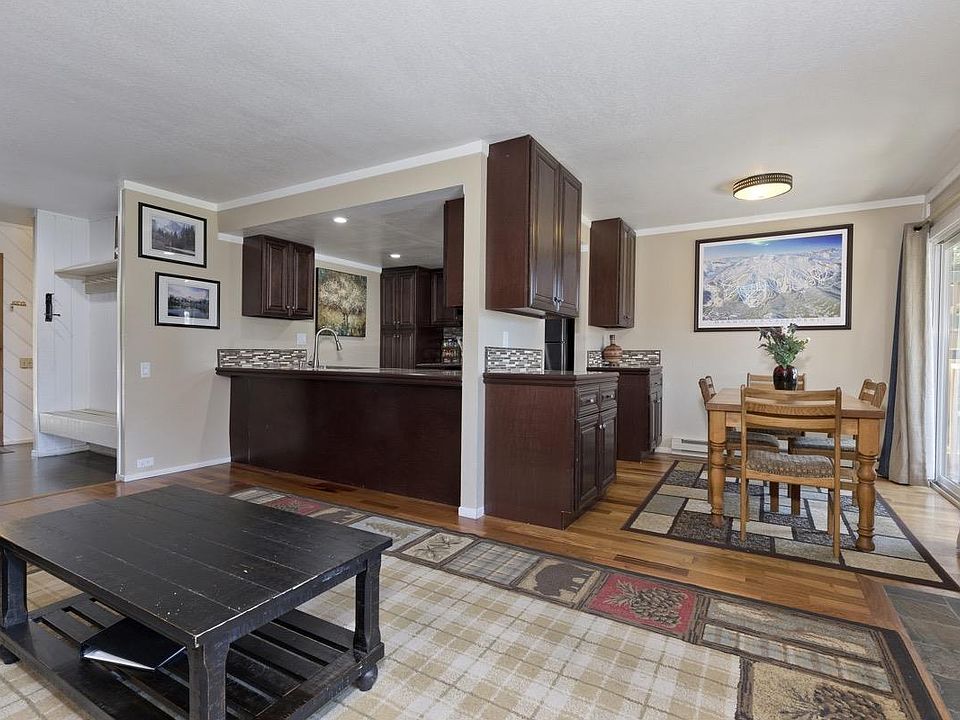 Nicely upgraded 1 bedroom with additional bunk area at Discovery 4! New kitchen cabinets and counters, black stainless steel appliances, wood floors in the living and dining rooms, updated fireplace stonework, mantle, heaters in both the living room and dining room with digital wifi thermostat, Keyless wifi door lock, new water heater, remote controlled adjustable bed base and more. Sunny south-facing exposure with mountain views from the living and dining rooms. Discovery 4 has a great location, just down the hill from Canyon Lodge and right next to the bike path and trolly stop up to the Lakes Basin. This is a well-maintained complex with a seasonal pool, hot tub, on-site laundry, office area, game room and sauna. A perfect spot to enjoy year-round and it has been a successful nightly-rental property.