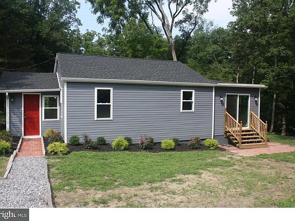 New Listing! This 2 bedroom, 1 bath ranch home has just been remodeled and is ready to go. New/newer features include roof, windows, siding, doors, A/C, heat, hot water heater, kitchen, bath, lighting fixtures, switches and outlets, flooring, interior doors, sliding door in eating area of kitchen, and a fresh coat of paint throughout. The former front porch was finished with new flooring, new windows, heat and A/C and would make a great sun room, den, family room, etc. This home is situated backing to a branch of the Rancocas Creek in a very quiet area of Medford near Kirby's Mill.