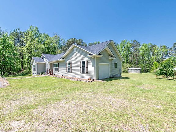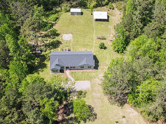 Welcome to your own personal retreat with two detached workshops! Perfectly situated on 5.44 acres and just minutes from the lake, this stunning 3 bedroom 2 bathroom plus flex room one-level home has been meticulously updated with beautiful new LVP wood flooring throughout, say goodbye to carpet! Fresh interior paint enhances the bright, open layout, starting with a welcoming foyer that flows into a cozy living room, complete with an impressive ceiling fan, perfect for relaxation! Abundant natural light fills the dining room, creating an inviting atmosphere for gatherings! The kitchen features granite countertops, a range with a double oven, built-in microwave, dishwasher, refrigerator, and a breakfast bar, along with a pantry for all your storage needs! Retreat to the owner's suite, where a ceiling fan, and the spa-like bathroom offers a double sink granite vanity, a soaking tub, a separate shower, and a spacious walk-in closet! Two additional generous bedrooms, each with walk-in closets, provide ample space for family or guests, while an office offers the flexibility to easily convert into a fourth bedroom if desired! A stylish bathroom with a granite vanity serves this area beautifully! Step outside to a charming deck that overlooks your serene outdoor space, featuring a firepit area, perfect for entertaining or unwinding in nature! Enjoy a huge fig tree, a pear tree and muscadine vines that all produced fruit last year! For the hobbyist or DIY enthusiast, two detached workshops (24x14 and 32x12) one with a 32x16 lean-to and is equipped with electric, heating/air, and loft storage, providing endless possibilities for creativity and organization! With the added convenience of an attached garage and a laundry room featuring a utility sink, you will effortlessly feel at home! No HOA and no city taxes! Don't miss your chance to see this gem, your dream home awaits!