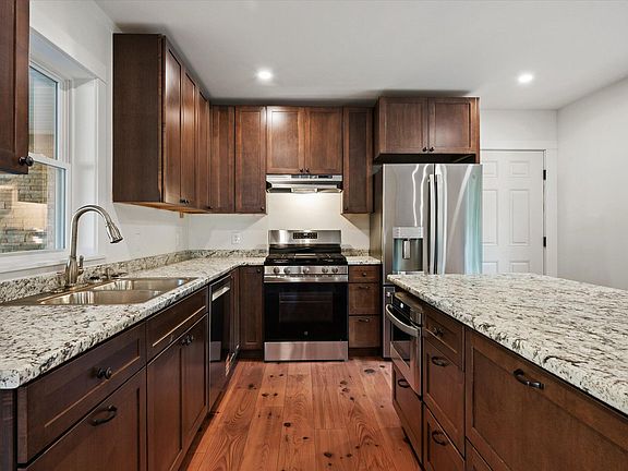 This charming 4 bedroom 2 bathroom home offers modern living with thoughtful updates throughout. Extensively remodeled, the residence features a redesigned kitchen equipped with new stainless steel appliances, a spacious center island and ample cabinetry. The open layout connects the kitchen to a bright dining area, ideal for daily living and casual entertaining. The main level includes a conveniently located first floor bedroom, while the second level offers 3 additional bedrooms. Both bathrooms have been updated with contemporary fixtures and finishes for a clean refreshed feel. New flooring flows throughout the home complimented by updated electrical and plumbing systems for added peace of mind. An attached garage with composite walls provides secure parking and extra storage, while newly paved drive enhances curb appeal. Step outside to enjoy a professionally landscaped backyard retreat complete with a private patio and built in fire pit. A perfect setting for evening gatherings or quiet relaxation. Located within walking distance to local shops and restaurants and downtown attractions. The home also provides easy access to nearby walking trail and scenic areas. This property blends convenience, comfort and style in a sought after neighborhood setting!