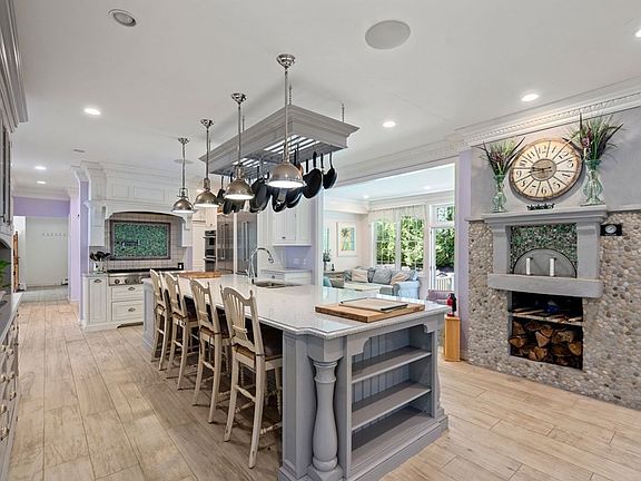 This custom built home situated at the end of a cul de sac in an executive level neighborhood has exquisite details, including 4 fireplaces, built-ins, elegant crown molding, wainscoting, delightful window seats, and many more additional luxurious touches. The layout of this home is designed for entertaining, providing a seamless flow that accommodates gatherings. The centerpiece of this entertainer's haven is an awe-inspiring dream kitchen, featuring a fully equipped prep kitchen, butler's pantry, wet bar, and an oversized island. The kitchen also showcases top-of-the-line appliances, a built-in wood-fired pizza oven, and much more! The family room offers direct access to a covered porch, complete with a stone fireplace, where you can unwind and enjoy the surroundings. The primary suite is a true sanctuary, featuring a dressing room, en suite bath, and exclusive access to a private deck—a perfect retreat for moments of solace! There is more— 4 car garage plus finished basement!