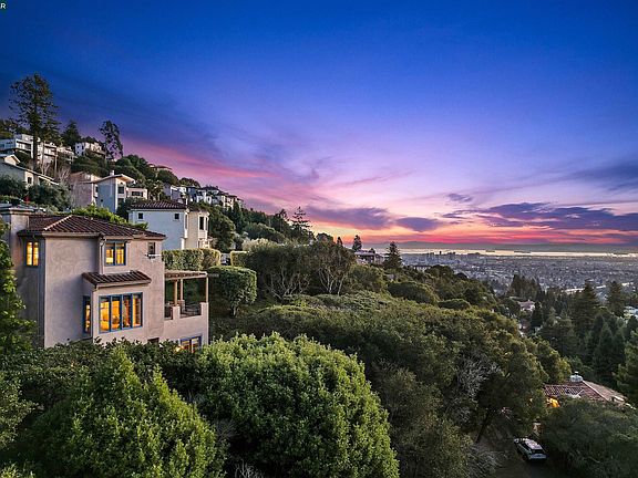 Experience the pinnacle of Bay Area living in this spacious and impeccably designed home, offering breathtaking views of San Francisco, the Bay Bridge, and beyond. Located on a serene, private and secure cul-de-sac, this 4511 sf, 5-bedroom, 3.5 bath residence on a nearly .25-acre lot, blends indoor luxury with outdoor splendor. With soaring ceilings, expansive windows, and an abundance of natural light, the home exudes quiet sophistication. The thoughtful layout includes a formal living room, formal dining room, and an open-concept gourmet kitchen that flows seamlessly into the family room, ideal for entertaining both indoors and out with access to the deck. Upstairs features a huge primary suite with a private deck, two bedrooms, full bath and a laundry room. Downstairs you will find two additional bedrooms, full bath and a spacious media room/family room with access to the yard. Additional highlights include a dedicated office, the European style front courtyard with a fountain and the flat grassy backyard area creating an effortless connection to the outdoors. Top-of-the-line upgrades include new Marvin windows, Smart Home System, whole house gas generator, EV charger, electronic shades, two HVAC systems and a new 119-gallon 199,000 BTU water heater.