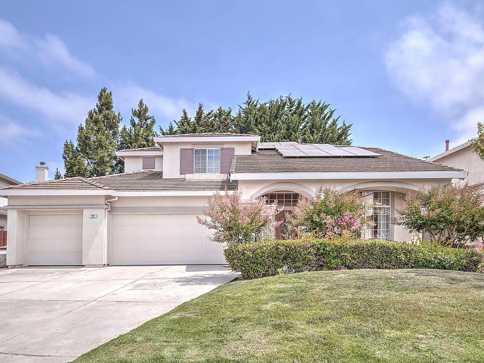 The perfect family home awaits you! This bright and spacious 4-bedroom, 3-bath home is located on a quiet cul-de-sac, just blocks from the elementary and high schools and even closer to recreation parks, featuring basketball hoops, swings, picnic areas and barbecues. The house boasts hardwood floors, a gas-starter wood burning fireplace, a cathedral ceiling in the oversized living room, and a master en-suite with separate shower and Jacuzzi. Packed with amenities, such as solar panels, Xfinity alarm system, and wiring for surround-sound, a 2020 remodel included low-flush compliant toilets, a Wi-Fi operated oven, water filtration system, and brand new paint and carpet. Located on a large, sunny lot, the private back yard is enclosed by an ivy-covered garden wall with plenty of shady spots and is ready to be transformed into an outdoor living space. To top it off, the roomy 3-car garage provides plenty of room for a workshop, storage and parking! Dont miss this opportunity!