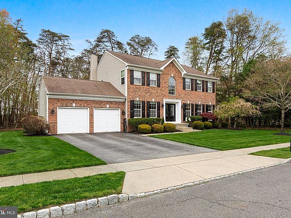 Introducing the exclusive Winthrop Model nestled within the Beacon Hill Development in Hainesport, NJ. A rare jewel set on a prime lot bordering Long Bridge Park with seasonal water views of the Rancocas Creek with its own secluded side space. This architectural marvel, one of only 36 homes in this section of Beacon Hill, enchants with its red brick facade, refined black shutters, and impeccably manicured grounds. Step inside to a grand 2-story foyer adorned with hardwood floors, leading to a versatile office/first-floor bedroom featuring solid wood French doors. The open-concept great room and kitchen showcase black granite countertops, a custom backsplash, a striking island, and sleek black GE appliances. A sliding glass door from the kitchen beckons you to private, breathtaking views of Long Bridge State Park. Recently refurbished hardwood floors grace the kitchen, living room, dining room, foyer, half bath, and hallway, infusing the home with warmth and elegance. Natural light floods the family room, centered around a wood-burning fireplace for cozy evenings. Additional highlights include a spacious laundry room with garage access, formal dining area, living room, and a half bath, offering unmatched luxury and functionality within this esteemed community. Upstairs, discover an expansive primary suite flooded with natural light and serene views of the wooded backyard bordering the park. Two individual walk-in closets provide expansive storage for all your clothing items. The ensuite bathroom boasts a stand-up shower, soaking tub, double vanity, and private toilet area. Three generously sized bedrooms and another full bathroom complete the upper level, providing ample space for family and guests. The basement is a notable feature, offering approximately 1,300 square feet of finished space plus additional storage. It includes a versatile area that could serve as an optional bedroom or office, catering to various needs. Equipped with a full, three-piece bathroom with stand-up shower, kitchenette, dining/game zone, wood-style floored exercise area, and family room with 9-foot ceilings and 5-foot Bilco window, the basement offers endless possibilities for living space. Outside, the property boasts an impressive large backyard backing up to Long Bridge State Park. Relax on the maintenance-free composite deck or paver patio, with the option of a fenced-in area creating a safe play area for children or pets. In summary, this home seamlessly combines comfort, functionality, and outdoor allure—a true must-see gem!