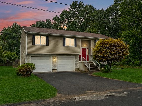 Located in close to all shopping and only a minute to the MA Turnpike!! This 3 bedroom, 1 bathroom raised ranch is one to see. Great floor plan, with open concept for living and dining rooms. This home has central air and some updates to the bathroom. Bedrooms have new carpet and have been freshly painted. The bright kitchen with new range and dishwasher has sliders leading out to a back deck. There is also a large finished area in the basement. Large 2 car garage under the home. The oversize shed in the backyard has power to it, also has plenty of room to store all of your lawn equipment. This home is very convenient to shopping area. Stop by and see this home soon.