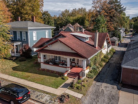 Over-Sized "Bungalow" Style home w/ 2nd finished floor. Quality of craftsmanship are on display throughout. The first floor LR w/hardwood floors, full wall of windows, beamed ceiling & fireplace is perfect for multiple conversation areas for family or guests. The French double doors & oak accents add charm & quality as you move from room to room. The Fam. Rm., private office or library is adorned w/oak bookshelves & a private half bath. Privacy doors in the DR section gives an executive feel to the space. The eat-in cherry kitchen is conveniently located off the rear enclosed porch. Fenced yard, 1 car det. garage w/alley access are just a few of the additional extras of this exceptional home. Thiel College, approx. 2 blocks. Main Street approx. 1 block.