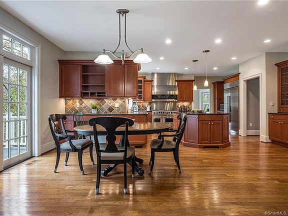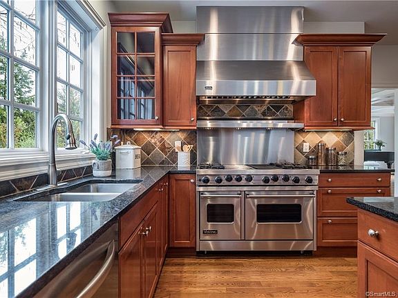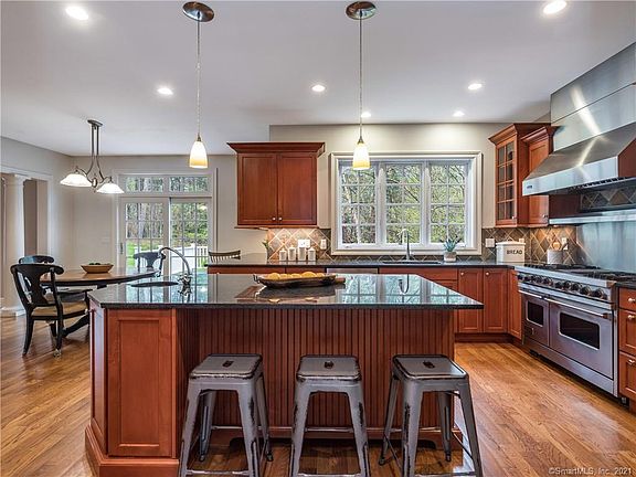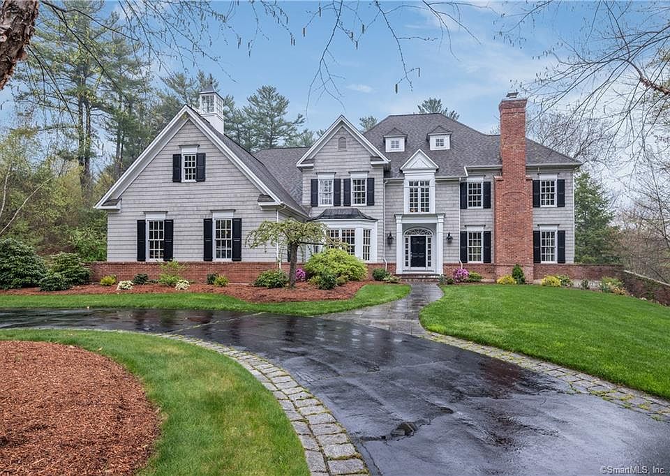 A graceful circular drive invites you to this stunning Shingle & Brick Style Home sited beautifully on 3.2 lushly landscaped acres.Masterful craftsmanship complete w/gorgeous windows,substantial millwrk,& generously proportioned rooms complement the open concept of this custom home. Designed to accommodate large gatherings and appeal to the most discerning chef the timeless kitchen offers a new 48" Subzero,Viking gas range w/grill,expansive island & breakfast rm. Dine alfresco on the composite deck while enjoying vistas of your exquisite yard or stargaze around the built in firepit on the lovely stone patio. Sunlight illuminates the fam rm w/beam ceiling, transoms & stone fireplace. Designed to embrace a casual elegance the sun filled coffered LR opens to spacious wainscoted DR. Natural cherry built ins and soft sunlight in the private study are ideal for quiet moments. Upstairs the 5 ensuite bedrooms are all generous in size. One offers great options w/sitting rm & access to a walk in attic. The owners suite w/hardwood flrs & exquisite slate tile bath is a deluxe retreat. Family & friends will flock to the bright newly carpeted walk out LL. Addl work out rm is perfect for even the most serious exercise enthusiast. Newer auto generator 2017, 2 new furnaces 2020, newly painted interior. Peacefully sited next to open space in one of Simsbury's most beautiful cul-de-sac neighborhoods offering close proximity to schools, shops, recreation & airport in an elegant country setting.