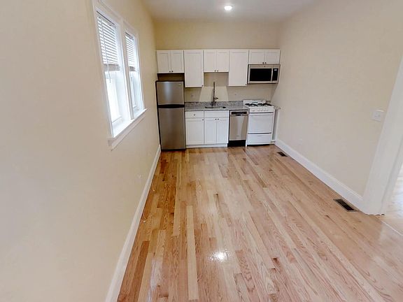 East Somerville Closest train = Gilman Square (Green Line T) 1 bed/1 bath (first floor, rear apartment) Building renovated June 2018 Modern kitchen (granite countertops, ss appliances, nice cabinets, etc.) Modern bathroom In-unit laundry Central heat/ac Hardwood floors throughout Street parking with City permit Off-street parking available for rent