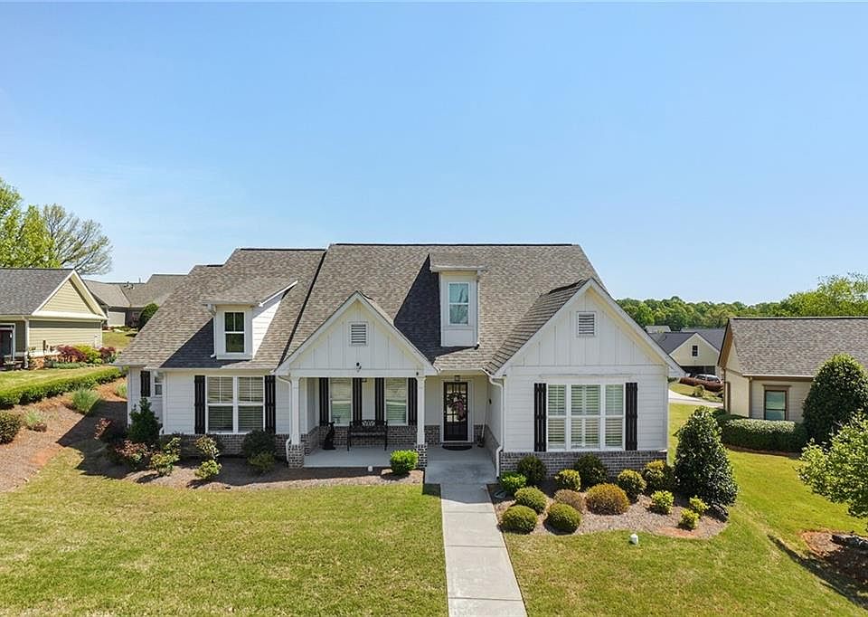 Immaculate craftsman home with all the fine touches! Hardwood floors, crown molding, coffer ceilings and custom plantation shutters are just some of the extras. Spectacular floor plan! Main level features split bedroom plan with master suite/spa like master bath and two additional bedrooms and guest bath. Upper level offers a separate suite with bedroom, full bath plus a bonus room and additional storage. Cozy front porch looks at park like setting with a gazebo. Elegant dining room with coffer ceilings and upgraded trim package. Open kitchen with solid surface counter tops, tile back splash oversized island, walk in pantry and separate eating area with access to screened in porch. Sunny great room with gas fireplace. This charming community is located walking distance/ golf cart distance to downtown Hoschton that offers restaurants, shops and activities. HOA dues includes lawn care front and back. The Village of Hoschton is a niche community with low annual fees and across the street from the Hoschton Community Park. It is convenient to highways, shopping, restaurants. Bring your pickiest buyer to this welcoming home.