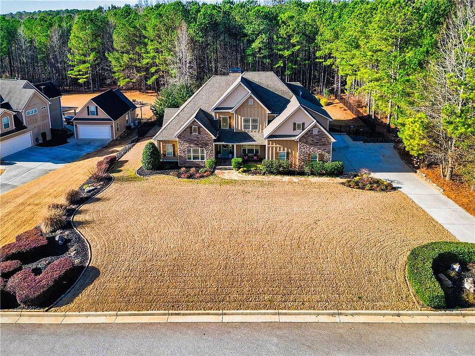 Did you see the Virtual 3D Tour, Video, and Floorplan? This well-maintained home boasts 3,792 SF and was built by custom home builder Chris Metcalf. It is located a little more than 2 miles from downtown Senoia, Georgia in the very desirable Magnolia Place neighborhood. The home is bright and airy, painted with warm neutrals, and outfitted with soaring ceilings, designer lighting, and extensive custom trim and carpentry. It offers 5 bedrooms and 4 full bathrooms on a 1.65-acre lot that looks into heavy woods that back to the neighboring pond. Your neighbors on either side are screened off in the rear by trees. The home features impeccable finishes throughout, from porcelain wood look tile throughout the main floor, custom Dickerson cabinetry, extensive carpentry millwork, spray foam insulation, and custom tilework in all of the bathrooms. Key Features: Bright and airy generous living spaces adorned with multiple vaulted or box or tray ceilings and large windows that fill the rooms with natural light. The Gourmet Chef's Kitchen is equipped with the KitchenAid Architect II series stainless steel appliances. The kitchen combines both style and functionality and truly is an entertainer's dream featuring granite countertops, an abundance of storage and cabinets with soft close doors and drawers, custom slide-out shelves, organizational features, and a huge walk-in pantry with a second KitchenAid refrigerator! The Primary Suite, located on the main floor is a relaxing oasis with its dramatic 12-ft double-tray + vaulted ceiling, and spa-like bath with its own vaulted ceiling, granite counters, tower storage, and a luxurious soaking tub. The spacious closet boasts more custom cabinetry and motion sensor lighting to keep you organized. A spacious dining room and 5th bedroom (or office) with another vaulted ceiling and private bath complete the main floor. Upstairs there is a private suite with yet another vaulted ceiling and full private bath w/tiled shower and two bedrooms (one currently a craft room) with Jack and Jill bathroom with shower/tub bath. All have large closets, ceiling fans, and neutral decor. The landing has an area for a study nook or wet bar and a small set of stairs leads to a huge media room perfect for Game Day. The highlight of the home is the partially fenced and professionally landscaped enchanting yard with its oversized vaulted covered rear porch and flagstone patios and walkways that is an ideal space for hosting friends and family and offers plenty of room for a swimming pool or additional garage. Check out the pictures of the visiting deer. An irrigation system will help you keep everything green and healthy. This large truly custom home offers a serene escape, allowing you to relish in the tranquility of country living while still being close to the vibrant town center. Location: Situated in the desirable Magnolia Place of Coweta Subdivision 5 minutes (2 miles) from Downtown Senoia. Magnolia Place is a fabulous and friendly community of 54 homes. A Seller paid Home Warranty is included PLUS $7,000 toward closing costs. The Seller is a licensed Georgia Real Estate agent.