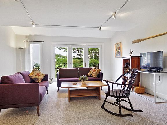 Slow it down, keep it simple and enjoy life in nearby proximity to hip downtown Rockland with welcoming views across Snow Marine Park and to the open Penobscot Bay! Move right into this 2-bedroom, 2-bath condo and you may keep your boat moored at Snow Marine, take daily strolls through the delightful South End, or make your way to meet friends for coffee, a meal or show downtown - it's all here for you! Leave the cars in the dedicated parking spots close to the front door and explore the harbor trail all the way downtown to enjoy galleries, eateries, shopping, entertainment and all this spectacular harbor city has to offer. This 1,326 sq. foot condominium is situated at the far end of the three other units offering one-floor living with a large ensuite on the second floor and newly remodeled bathroom. The living and kitchen spaces are open concept with French doors leading you to a sitting balcony overlooking a sprawling lawn and the bold Atlantic. There is plenty of closet space in each bedroom, ample attic storage and a large dry basement with windows facing the harbor. The basement is an outstanding opportunity to remodel more living space given the water view windows in place. Seller installing new deck window and door accessing the exterior water view deck.