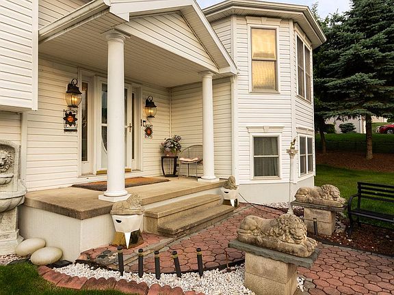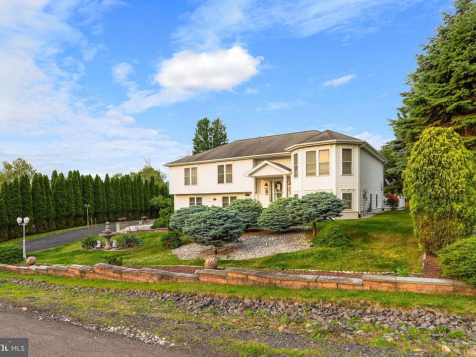 Lovingly maintained by it's original owners, be the next to call this beautiful home with picturesque views, your own. The front yard welcomes you with tasteful landscaping and a paver walkway to the front entrance. Traveling in through the front door brings you to a spacious landing with lots of natural light and the coat closet. Upstairs on the main living level is a large and comfortable living room. Connected to the living room is the formal dining room with ample space for dining furniture. The dining room opens into the kitchen with lots of cabinet space, granite tile floors, white cabinets and a beautiful view of the scenery surrounding the home. Additionally, the kitchen offers counter top seating, a breakfast table area and access to the rear deck. Convenient for hosting lovely outdoor events in a peaceful setting. Back through the kitchen leads through to the hallway to the bedrooms. Ample closet and linen space is located in the hallway. The hall bathroom offers an upgraded ceramic tile package including adorning the walls, a tub and shower combination and a skylight. The hardwood floors continue through all of the well sized bedrooms. Both of the secondary bedrooms have good sized closets. The primary bedroom has it's own private bathroom with marble tile, jacuzzi jets in the tub, two large closets and a view of the nicely landscaped rear yard. Moving to the lower level offers lot's of possibilities, with potential for additional bedrooms to be added in the future. Currently the finished space is used for a secondary living room and entertainment area. There is a gas fireplace, comfortable seating and a separate bar area. The walkout also offers access to the lowest of the three levels decks which all connect to one another. The third full bathroom, inside access to the two car garage, the utility room and additional storage are also on the lower level. This home is equipped with a central vacuum, an attic for storage, a garden shed and many more upgrades. Close to stores and travel routes with a tranquil setting, schedule a tour to make this home your own.