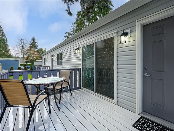 Immaculate 2019 Modular Home in Seabreeze MHP! This bright, modern home offers peace of mind and a great location making it a great opportunity to own the place you deserve. Open plan living space with a large kitchen and bar with vaulted ceilings, create a light-filled spacious feeling in the living and kitchen areas. Modern finishes and layout add a touch of contemporary style for comfort and convenience. Outside enjoy a large deck and storage shed with tidy landscaping, new garden beds and room to personalize further. Relax on the generous deck, ideal for quiet moments and bbq's. The primary bedroom offers ample space and privacy. Two off street parking spots and just updated with a heat pump, gutter guards & more. Seabreeze MHP is a well-maintained 55+ community, nestled in a natural setting, just minutes from shopping, grocery stores, airport & ferries. Great option for its serene atmosphere and proximity to outdoor activities. Don’t miss this one, easy to view- call today.
