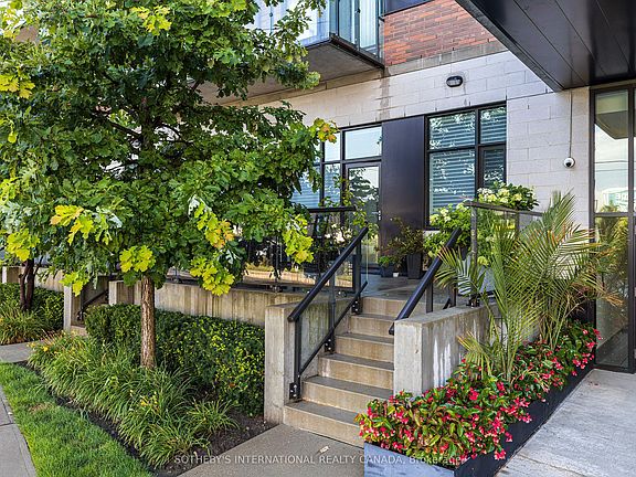 Step into style and spaciousness with this luxurious 2-bedroom+den+office townhouse, offering over 1,420 sq ft of thoughtfully designed, open-concept living. Bright, modern, and exquisitely finished, this home with soaring 12+ft main floor ceilings is a stunning blend of urban luxury and functional design. Bathed in natural light from the unobstructed South view, the main floor has been elevated with extensive custom upgrades that set this home apart. The den features a custom-built wine bar with integrated lighting, and a stylish ceiling light fixture that creates a warm, ambient atmosphere. The dining area is anchored by a newly installed designer light fixture, adding a touch of elegance to every meal. In the living room, extensive renovations include custom millwork, new cabinetry, a sleek countertop, and a vertical slat wall with pendant lighting on the left side. A beautifully crafted fireplace mantel with marble surround becomes the rooms focal point, complemented by floating shelves on the right perfect for both storage and display. The sleek, all-white kitchen complete with a natural gas oven, flows seamlessly into the main living area, ideal for entertaining. Upstairs, the primary suite offers a spa-like ensuite, walk-in closet, and private terrace your own secluded oasis. An additional main floor terrace functions as both a second outdoor entertaining area and a private entrance with a BBQ hookup. Whether you're entertaining or enjoying a quiet evening in, every inch of this townhouse delivers refined comfort and effortless style. Building Amenities include: Rooftop Terrace, Fitness Centre, Party Room, Pet Spa, Concierge Service and Guest Suites. Situated in the heart of Toronto's coveted Leaside neighborhood, 25 Malcolm Road offers unmatched convenience to top schools, parks, shops, and transit. Just steps from top-rated schools and a short walk to the LRT and major transit routes, this location perfectly blends family living with urban accessibility.