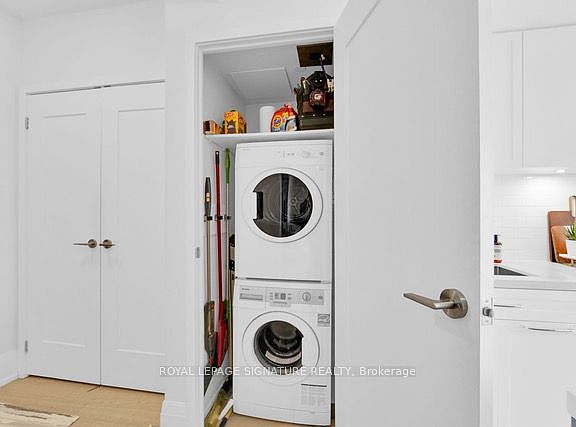 Where Leaside meets Luxury. Welcome to The Upper House Condos. This bright and spacious 1 + 1 bedroom, 1 bathroom suite offers 653 sqft of thoughtfully designed, open-concept living, walk out to your private 52 sq ft balcony. With soaring 10 ceilings, wide-plank floors, potlights, 7" baseboards, plenty of closet space ( each with its own custom built-in), ensuite laundry and an abundance of natural light pouring in from the sunny south facing exposure. The sleek kitchen is equipped with custom cabinetry, beautiful countertops, premium appliances and an island perfect for entertaining. The space flows seamlessly into the main living area and den, ideal for relaxing at home or entertaining. The primary bdrm is a true retreat with a full double closet. with custom built-ins and plenty of storage. This boutique mid-rise building offers a refined living experience with only 66+ units spread across 7 floors. With some of the friendliest neighbours in the city and a full-time cleaner on site, this building is exceptionally well-maintained, with a great community vibe. Residents enjoy access to a range of upscale amenities, including: Concierge Service, Fitness Centre, Rooftop Terrace, Party Room, Pet Spa, Guest Suite and Plenty of Guest Parking. The building's design emphasizes privacy and luxury, with thoughtfully curated common areas and secure underground parking. 25 Malcolm Road is situated in the heart of Toronto's coveted Leaside neighbourhood, with unmatched convenience to top-rated schools, parks, cafes, shops and the new LRT. (42017617)