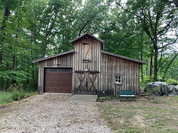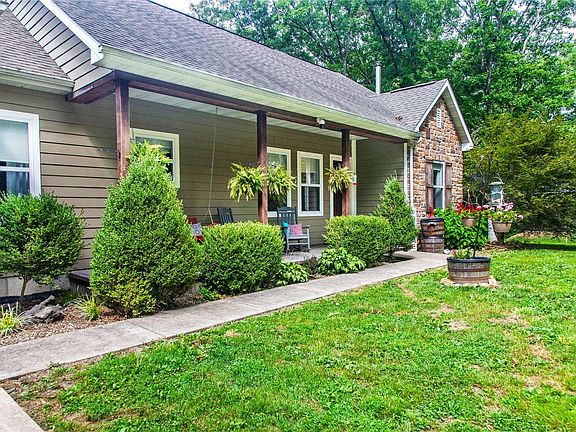 CUSTOM 5 BEDROOM RANCH ON 17.9 ACRE HILLTOP OASIS WITH ONE GIGABYTE HIGH SPEED INTERNET! Spacious 5 bedroom, 3 bath home situated on a private country road & an easy drive to HWY 70. Take in the beautiful soaring ceilings, wall of windows offering spectacular views, large back deck, covered back patio and front porch and a finished walkout basement. Other features include a wood burning fireplace, induction stove/oven, soft close kitchen drawers, tinted/solar UV windows on west wall, motorized shades and rounded archways. Plenty of room to roam with hilltop views, winding paths wonderful terrain for riding four wheelers and a place to hunt and shoot guns. A beautiful rustic 30 by 30 barn made from lumber harvested on the property has concrete floors, electric and a woodburning stove. Kids will love the charming chicken coups and not to mention the tree fort set in a park like setting. Easy drive to the charming German town of Hermann and all of its restaurants, wineries and shops.