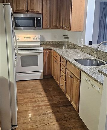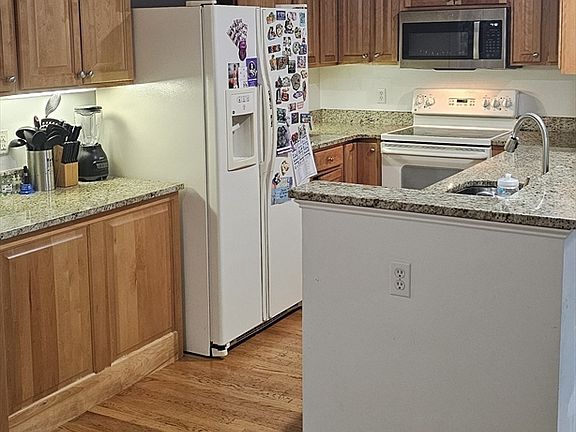 Prime Location in downtown Canton Center. 2-3-bed, 2.5-bath townhouse in Grover Estates. Showcasing an open kitchen with granite countertops, a seamless living and dining area with hardwood floors, a gas fireplace, and a walkout to a private balcony. The main level also includes a spacious primary suite with a dual vanity bath and walk-in closet, guest half bath, and laundry closet. The lower level provides a versatile den or 3rd bedroom, full bath, and additional walk-in closet. Highlights include central air, private laundry, basement storage, and an attached garage. Seconds from the library, town hall, train to Boston, and Washington Street shops. Feels like a single-family home!
