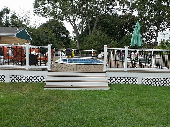 Wonderful and well maintained 3 bedroom ranch on a quiet street with fenced in yard including sprinklers, extra large composite deck surrounding a refreshing pool on a private 10,000 sq ft lot. Perfect for outdoor entertaining! Ample mudroom/breezeway leading into granite eat-in kitchen with tile floors.Hardwood floors in bedrooms and family room. Double sink granite vanityin updated full bathroom. Central air throughout. Newer Roof and windows. Cedar Shingles on exterior. Large, dry basement that is partially finished