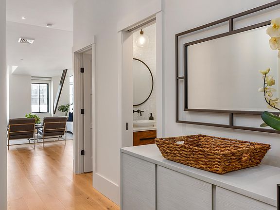 One of the most striking buildings in all of Portsmouth, 25 Maplewood offers unparalleled style, design & location. First occupied in 2020, this is the first resale to ever hit the market – an exciting chance to own a truly unique piece of this architectural gem. The moment you step inside, you'll be captivated by the exceptional fit & finish that sets this condo apart from anything else in town. Curved walls & archways, exposed steel beams, a sleek, modern design create a home full of character & visual interest. Large windows flood the space with natural light, enhancing the open, airy feel. The open kitchen, dining & living areas are perfect for entertaining, centered around a large island with seating for 4. Extend outdoors to a private patio with views of the iconic North Church Steeple. The primary bedroom features a spacious walk-in closet with custom cabinetry & a large tiled walk-in shower. The guest bedroom is also en-suite, complete with a built-in desk. A third bedroom, currently used as a home office, includes tasteful built-ins & a sliding door for privacy. Modern features include motorized blinds, a gas fireplace & energy-efficient systems. Storage is abundant, with custom storage cabinets in the utility room & additional storage lockers to complement the two-car, side-by-side garage parking spots. This condo is truly one of a kind – a rare opportunity to own an exceptional home in this high end Downtown building.