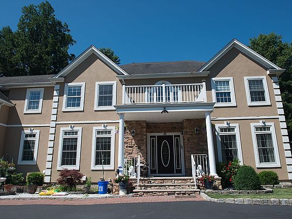 Gorgeous NE facing 4+ BDs & 5 Full BTHS Custom Home on quiet cul de sac w/Lake views. Complete renovation in 2014. Grand 2 story entrance w/diamond cut granite flrs & wrought iron staircase. Designer decorative molding & hardwood flrs thruout. 1st flr office-large enough to be used as bedroom & adjacent to full updated bath. Gourmet Kitchen w/beautiful cabinetry w/rope crown molding, soft close doors/drawers, center isle/breakfast bar, ss applcs, recessed lights & french door to large maintenance free deck & beautifully landscaped & fenced. 2 story Great Room w/gas fp, cherry hardwood flrs/w border. 2nd Staircase to large Master Suite w/ tray ceiling large WIC,sitting room w/2 WICs & updated Master Bath w/granite, 2 sinks, jetted jacuzzi tub & shower stall w/bench seat. Guest suite w/full updated bath w/body sprayers & handheld. 3 Zone HVAC. Full finished basement w/full bath & stairs up to 3 car garage. Stucco & AZEK siding. 40 amp EV charging port in garage. Close to NYC bus/train.