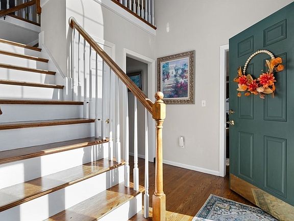 Located on a cul-de-sac street within Valentina Village, this beautiful contemporary Colonial features a two story foyer with a large palladium window which brings in lots of natural light. The formal living and dining rooms and the family room with gas fireplace all have gleaming hardwood floors. The recently updated kitchen features a center island, granite countertops and stainless steel appliances. The dining area has sliders leading out to a new covered deck that is a great entertaining area overlooking your private backyard. Upstairs the primary suite is extra spacious and features a walk-in closet and a full bath with a jacuzzi tub and separate shower. The additional three bedrooms are all good sized and share another full bath. The walkout lower level is finished and is a great space for a media room. There is also an office space and a half bath. Gas heat, central air, newer HVAC (2020). All the savings with owned solar panels! Also included, high speed garage EV Charger!