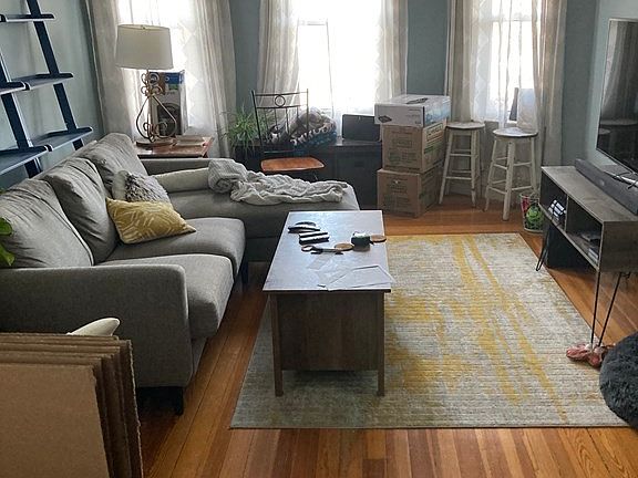 updated 5 room 2 bedroom unit All hardwood floors have just been refinished ,gleaming ! newly pained interior, new doors inside. just off main st near Tufts Park. 2 off street parking spaces. washer dryer in unit. Shared yard with deck table and chairs. ,full bath. Walk to Tufts Campus and Ball Square with easy highway access. Lease flexible 1 year or 9 months.