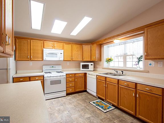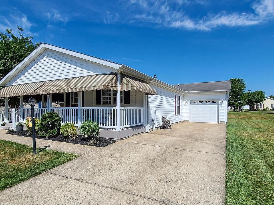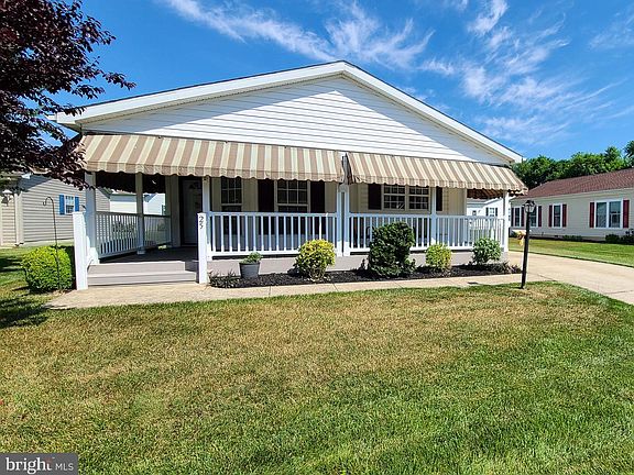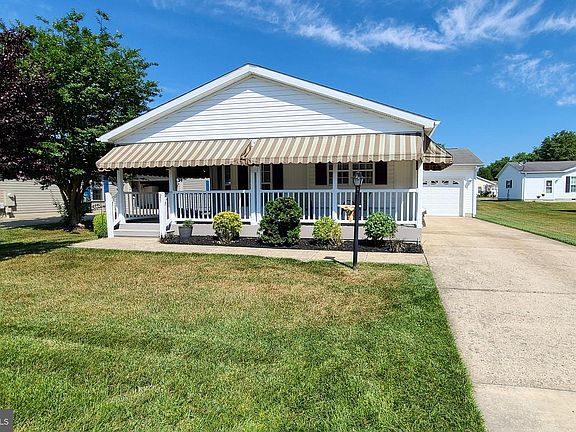 Camden Delaware's premier 55+ active lifestyle community with five-star amenities; Welcome to Barclay Farms! This well-maintained Belmont model immediately greats you with a spacious shady front porch. Upon entering the home you will find an open concept living and formal dining area with vaulted ceilings throughout. The fully equipped kitchen offers an abundance of counter space and rich wood cabinetry. Complimenting the kitchen area is a breakfast nook with ample natural light being provided by large windows and a skylight. This cozy home offers two bedrooms and two full bathrooms. The primary bedroom boasts an en-suite bath; Complete with double sinks, a sliding door shower, and a linen closet. Each of the two bedrooms has a convenient walk-in closet. The one-car attached garage and laundry room provide even more handy storage. Schedule a tour today and see carefree one-floor living at its best! Quiet community with easy access to restaurants, shopping, healthcare, and Delaware beaches. The Land Lease of $536/month includes lawn maintenance, trash removal, full use of the clubhouse, and all community amenities; including the swimming pool, fitness center, spa, game room, library, fishing pond, gazebo, picnic areas, and more!