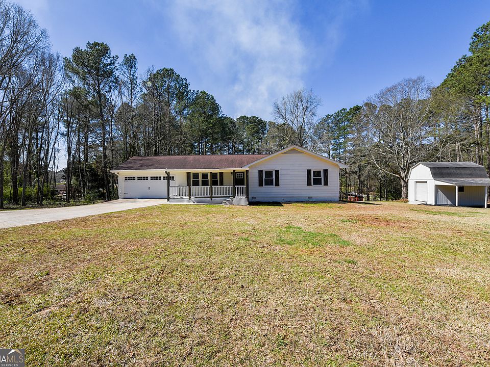 The spacious living welcomes you with newly installed flooring, providing both durability and elegance underfoot. Natural light floods the space, accentuating the crisp, clean lines of the freshly painted walls. The heart of this home is its stunning kitchen, where dark cabinets and stone countertops create a striking contrast against the backdrop of the bright, open layout. Whether you're whipping up a quick meal or entertaining guests, this kitchen is sure to inspire your culinary adventures. Adjacent to the kitchen, you'll find a cozy dining area perfect for enjoying meals with loved ones. From casual brunches to formal dinners, this space offers versatility and charm. Unwind and recharge in the tranquil master suite, complete with a private en-suite bathroom for added convenience. Two additional bedrooms provide ample space for family, guests, or even a home office, ensuring everyone has their own place to call their own. Step outside to discover your own piece of paradise. A spacious deck beckons you to soak up the Georgia sunshine or host summer barbecues with friends and family. And when you're in the mood for some relaxation, the charming porch offers the ideal spot to sip your morning coffee or curl up with a good book. Located in Covington, GA, this property offers the perfect blend of serene country living and convenient city amenities. Explore nearby parks, dining, and shopping options, or simply take in the natural beauty that surrounds you. Don't miss your chance to make this beautifully remodeled home your own. Schedule your showing today and start envisioning the possibilities of life in Covington!