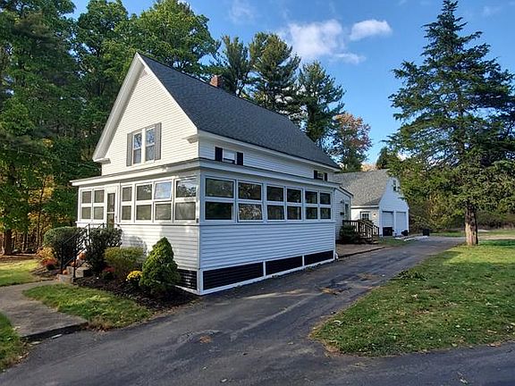 Built in 1868, this quintessential New England home has so many great features for its new owner. Formerly part of the McGuire Farm, same family for over 65 years. This home has 3 bedrooms, two baths, and large wrap around 3 season porch! Living room, dining room, den & laundry on the main level. Many recent renovations and upgrades: 200 Amp service, new lighting, plugs, electrical, new bathroom with shower tub, 2nd floor 3/4 bath (2010) with walk in. Large master bedroom with walk in closet -15 ft. Newer roof, boiler with high efficiency controls - tankless hot water, and new oil tank! Level wooded lot with stone walls, including apple & pine trees! Garage - two bay, two story with walk up attic with tons of storage, built in 2014. Plenty of parking with loop drive and large private backyard for entertaining and relaxing.