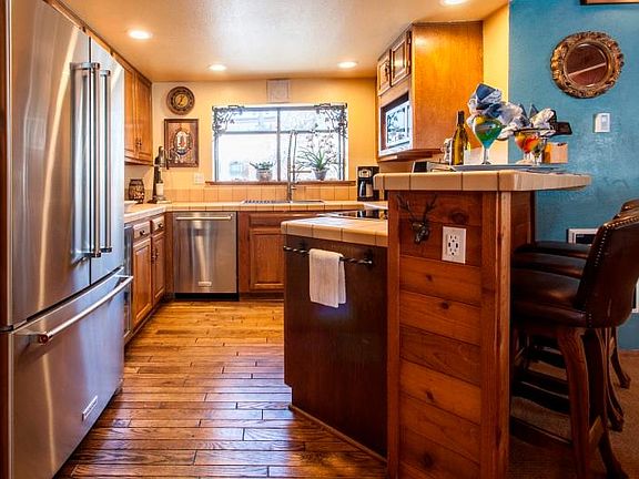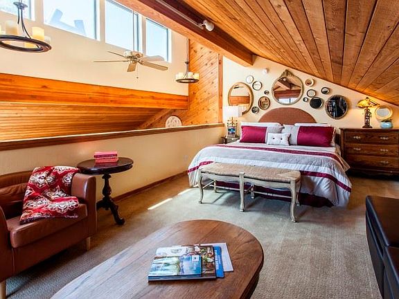 This is a spacious vacation rental with southwest exposure and is an end unit. It has two ensuite bedrooms plus an ample loft. The fully furnished and remodeled condo boasts new stone flooring, fresh carpeting in the bedrooms, and a chef's kitchen with top tier Kitchen Aid appliances. The kitchen and dining areas are amply equipped to serve a holiday meal for a family of eight, or a larger party to take in a football game or wine tasting. Soaring vaulted ceilings show the new stonework of the wood burning fireplace. Bright and well lit, this home is furnished with a blend of contemporary and antique pieces for a relaxed elegance that is perfect for a romantic weekend or a boisterous family get together. A private deck has built-in counter space for dining alfresco while taking in views of the sunset lighting up the Sherwin Peaks. While you stay, be sure to relax with a visit to the two hot tubs, or two saunas that are all open and heated year round. The pool and tennis court are available for the late spring and summer until the first snow. Ground level parking is plowed and the porch is shoveled for you, so no drudgery trying to dig out after a snow fall. Whether you visit in the winter for downhill, cross-country, and snowshoeing, or you prefer the summer for hiking, mountain biking, and the many art and music festivals, Alpine Rose at Snowflower has everything you could want to make your stay unforgettable. Pooch friendly, 1 small dog 3-night minimum, taxable Nightly rate $425 low season and $499 high season (December-March and summer June-August). The weekly rate saves! $1399 low season and $1600 high season. The monthly rate is non taxable and is the best rate option if your dates are open, $4400 low season, $5200 high season Non-smoking Rates subject to change without notice The primary renter must be a MINIMUM age of 27 TOT tax certificate # 8119, Mammoth Lakes A signed rental agreement and a photo ID is required prior to arrival For monthly guests, housekeeping is required every 2 weeks and will be an additional cost billed by our housekeeping staff. An exit cleaning fee is $325 will be billed up front.